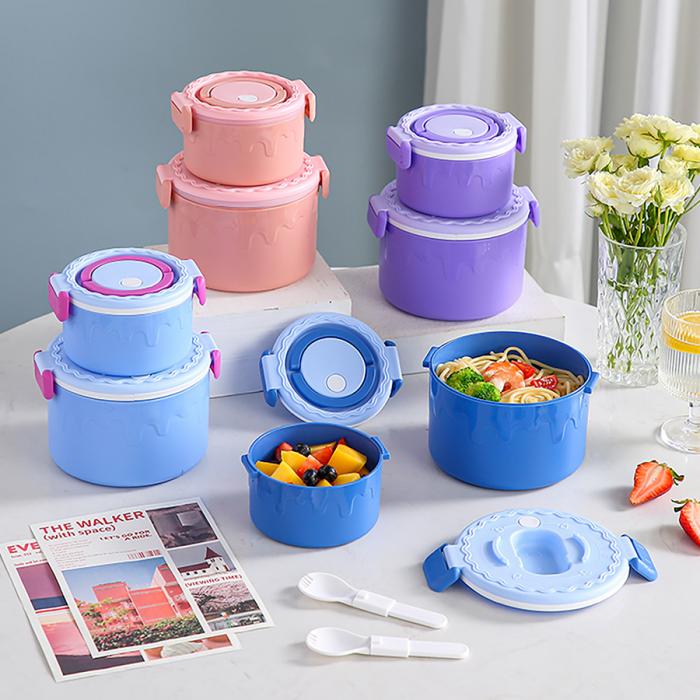 蛋糕圓形塑料雙層飯盒1000ml+380